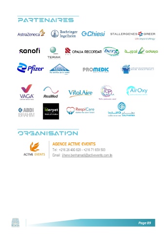 PARTENAIRES ORGANISATION AGENCE ACTIVE EVENTS Tel : +216 26 400 820 - +216 71 659 503 Email : jihene.benhamadi@activevents.com.tn Page 89